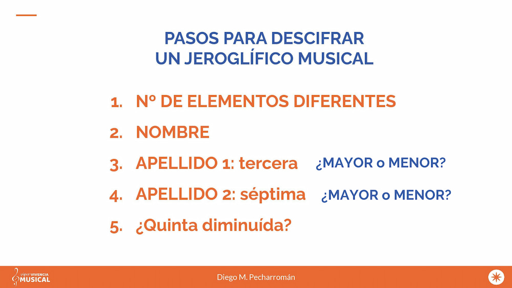 Una vez conocidos todos los cifrados y todos los símbolos esenciales, ahora toca hacer el proceso inverso, vamos a descifrar un jeroglífico musical. Es decir, vamos a averiguar que notas necesitamos para formar el acorde que el cifrado nos indica.