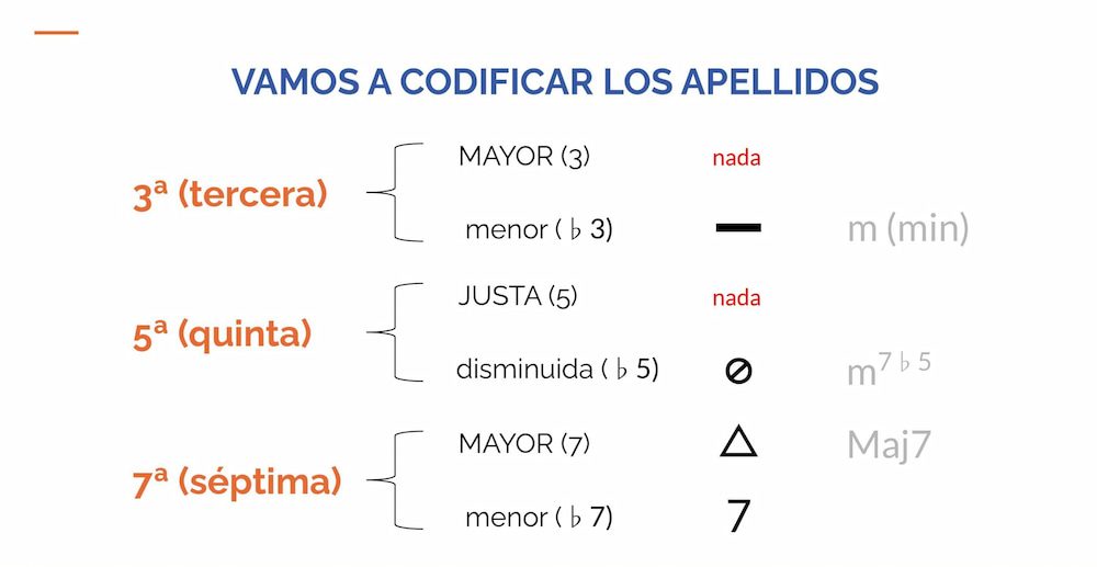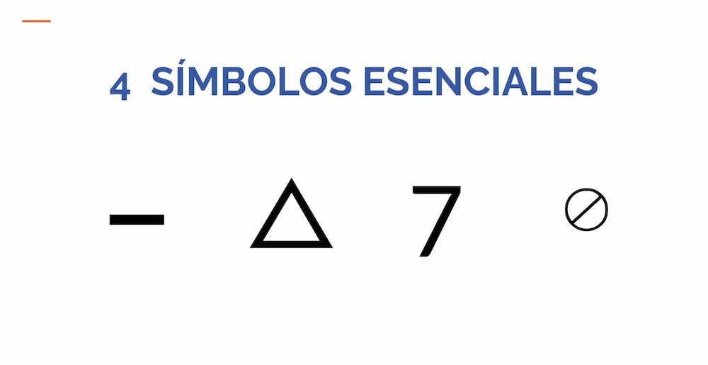 Por eso vamos a hablar de los símbolos esenciales, que son los que tenemos que buscar en cualquier acorde cifrado.