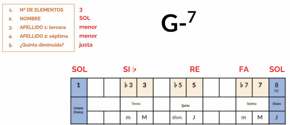 Ahora nos tenemos que preguntar por la séptima ¿hay algún elemento que nos hable de la séptima? Efectivamente el siete «7», corresponde a la “SÉPTIMA MENOR”