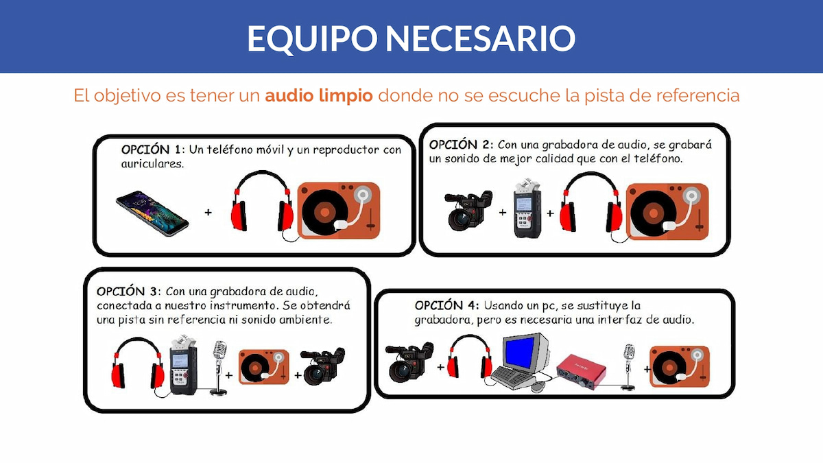 Esta pista se reproducirá en un dispositivo con auriculares con el fin de que en la grabación sólo tengamos nuestro instrumento, y no se escuche un metrónomo o un audio de fondo que emborronará el resultado final.