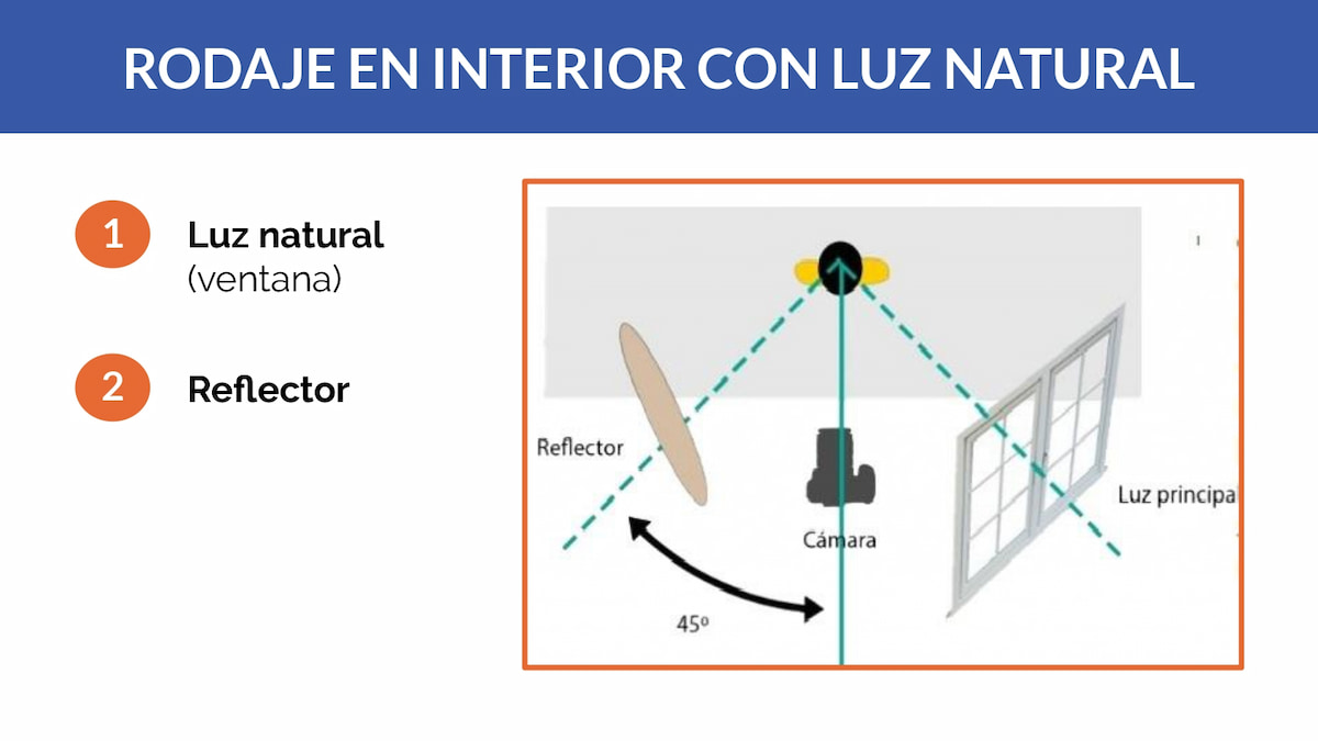 Evitar el contraluz, es decir, que la luz venga de detrás de nosotros, ya que se vería nuestra cara en sombra y si es necesario, usar un reflector que rebote la luz para iluminarnos.