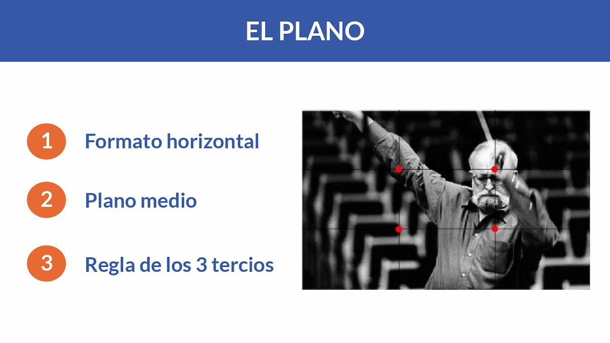 Se recomienda la regla de los 3 tercios que se basa en buscar los puntos de atención en las intersecciones que se producen al dividir el plano en 3 zonas verticales y otras 3 horizontales.