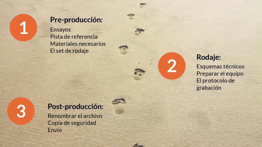 Para eso se propone un protocolo de rodaje que se trata de un orden, siempre el mismo para empezar a grabar con el equipo.