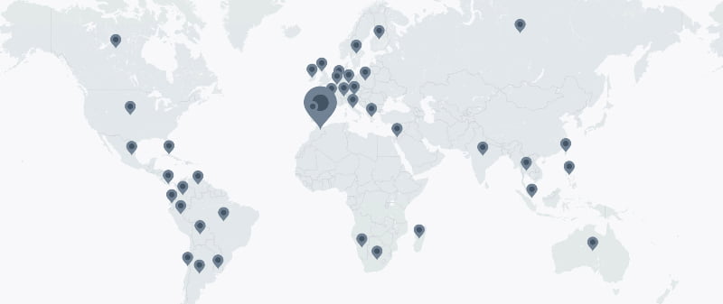 Actualmente han pasado por la academia online 1082 alumnos de diferentes países del todo el mundo. Adjunto el mapa de alcance.