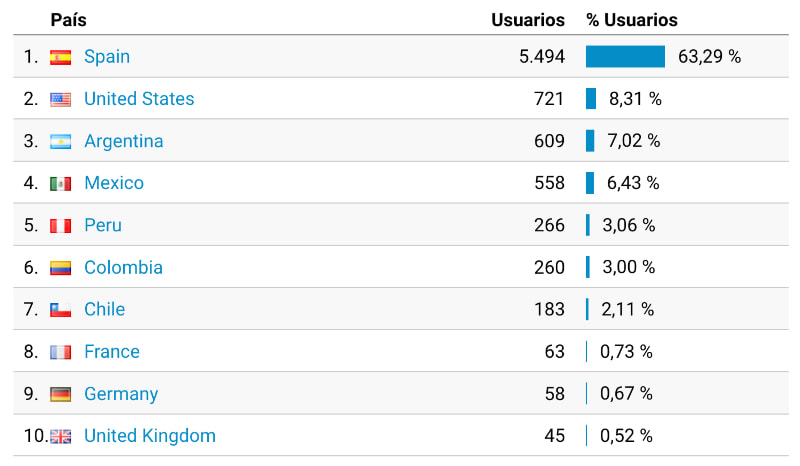 Y el siguiente dato te lo dejo por si tienes curiosidad por la zona geográfica de la mayoría de visitantes. También muy importante para conocer a tu cliente ideal y saber a quién dirigirte a la hora de crear tu estrategia.